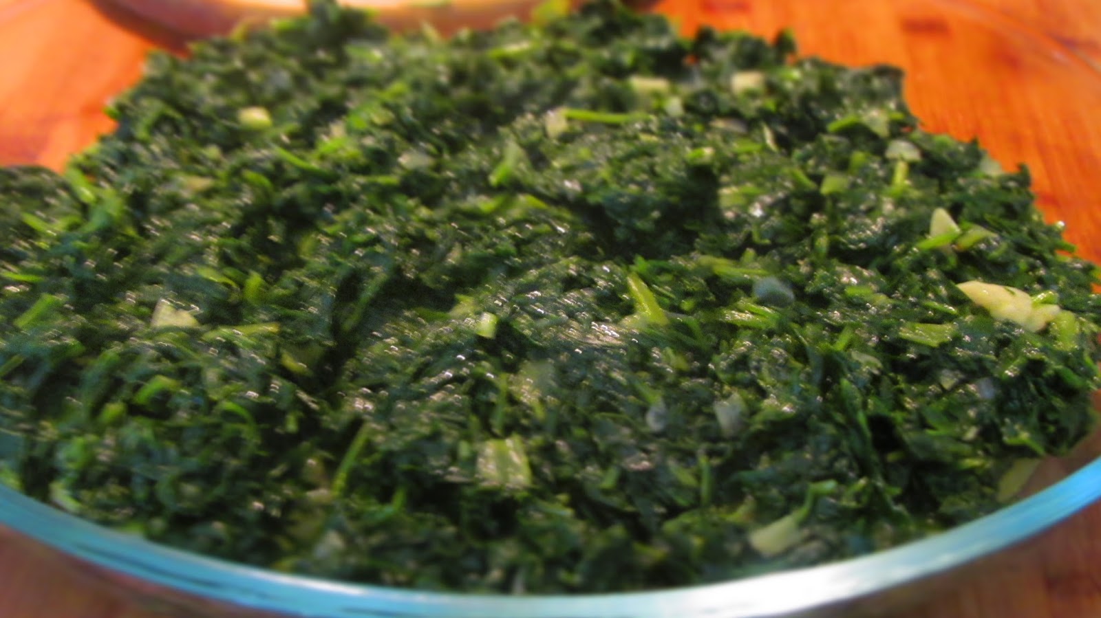 - Ситно нарязаният спанак се добавя към лука. Когато преценя, че спанакът е достатъчно омекнал и излишната течност се е изпарила, добавям на вкус сол, черен пипер и индийско орехче /по Ваше желание/.