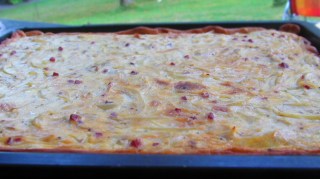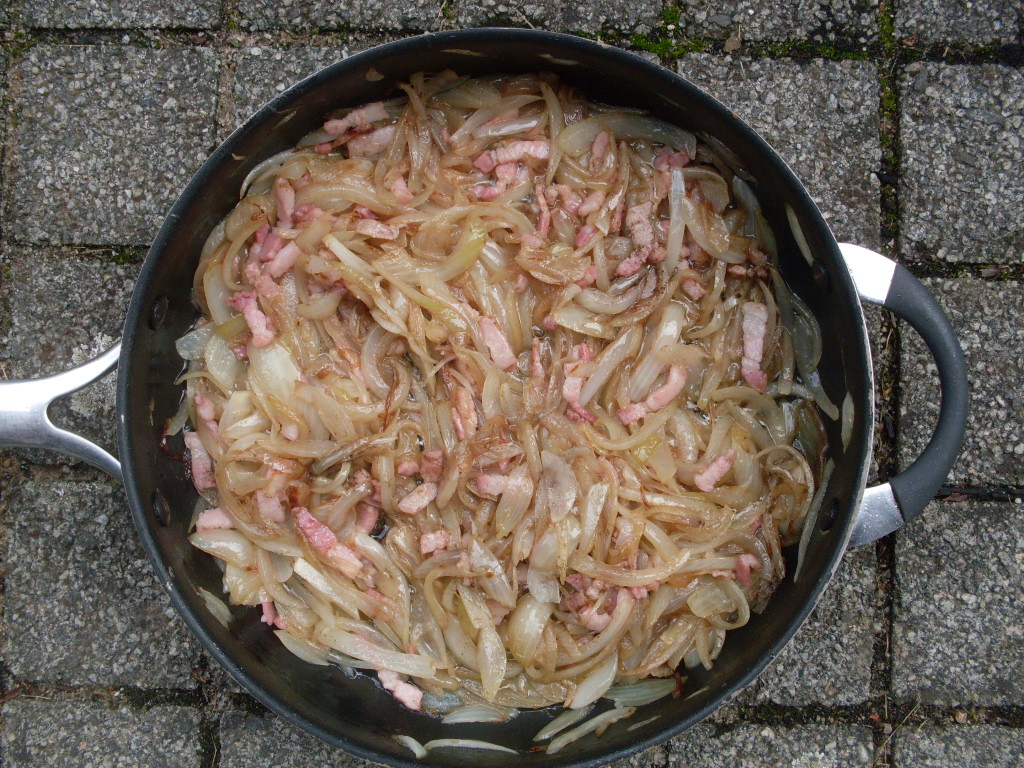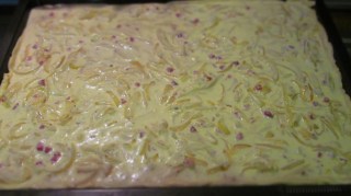 Когато за първи път го сервирах на Джони, моят по-голям брат, той не остана доволен. Не бил какъвто той го е пробвал. А то се оказа, че според регионите и Zwiebelkuchen има различна дебелина. Сега вече си имам моят „Лучник“ и всички го харесват.