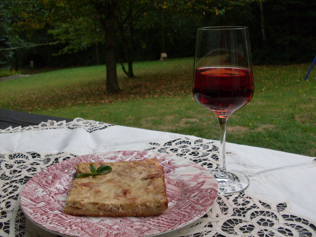 Eто, че тук при нас наближава сезонът на гроздобера и виното. Точно по това време навсякъде около река Мозел и тук при нас в Hunsrück можете да опитате типичния за този район Zwiebelkuchen и Federweißer. Тъй като буквалният превод на Zwiebelkuchen е „Сладкиш с лук“, което нещо не ми се връзва на български, затова го кръстих „Лучник“. А пък Federweißer е тъй нареченото ново вино. По традиция двете неща са неделими. Кажете ли Zwiebelkuchen веднага се прави асоциация с Federweißer.