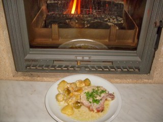 • В купичка смесвам млякото, сметаната и бульона от пушените котлети. Тази смес добавям към лукът и брашното, разбърквам и изключвам котлона. Добавям половината от настъргания кашкавал към този сос. Овкусявам със сол, ако е нужно, бял пипер и индийско орехче.