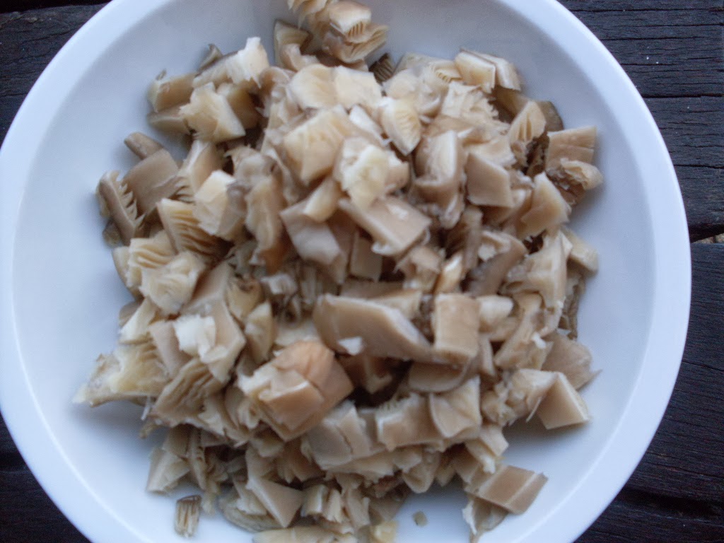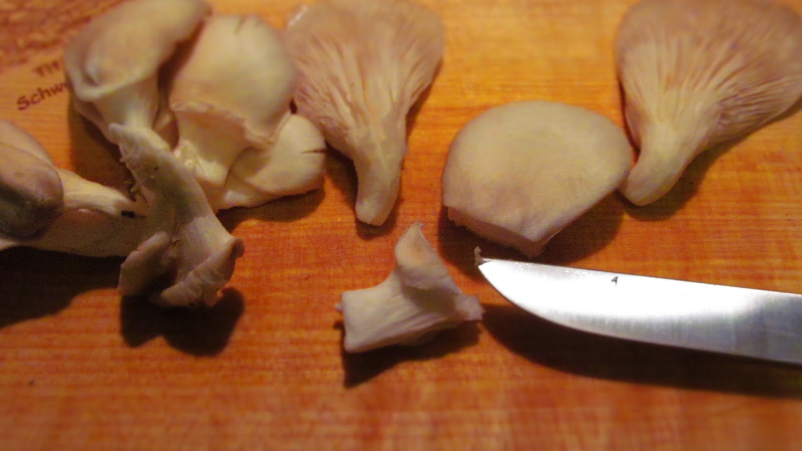- Измивам гъбите и ги нарязвам на ситно, като отделям пънчетата и по-месестата част около пънчетата. Точно тази част от гъбите, колкото и да я варя – винаги остава жилава. Така, че по-добре да се отстрани.