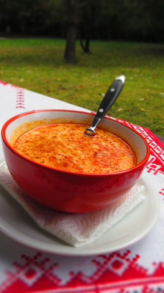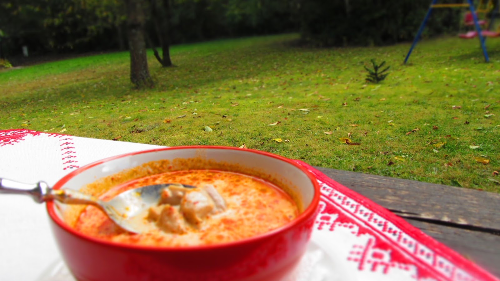 Обичаме и истинската шкембе чорба, но пък рядко срещаме шкембе в магазините в Германия и поради тази причина от време на време го приготвям с кладница.