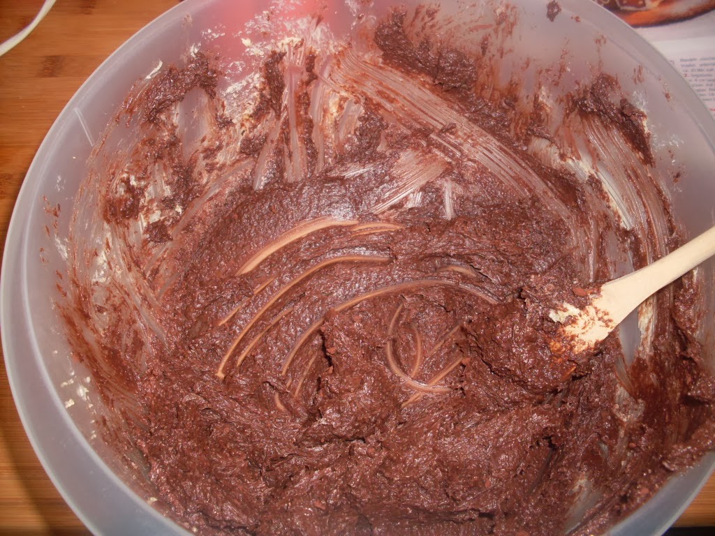 - Добавям постепенно брашното, смлените бадеми и какаото.