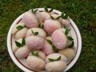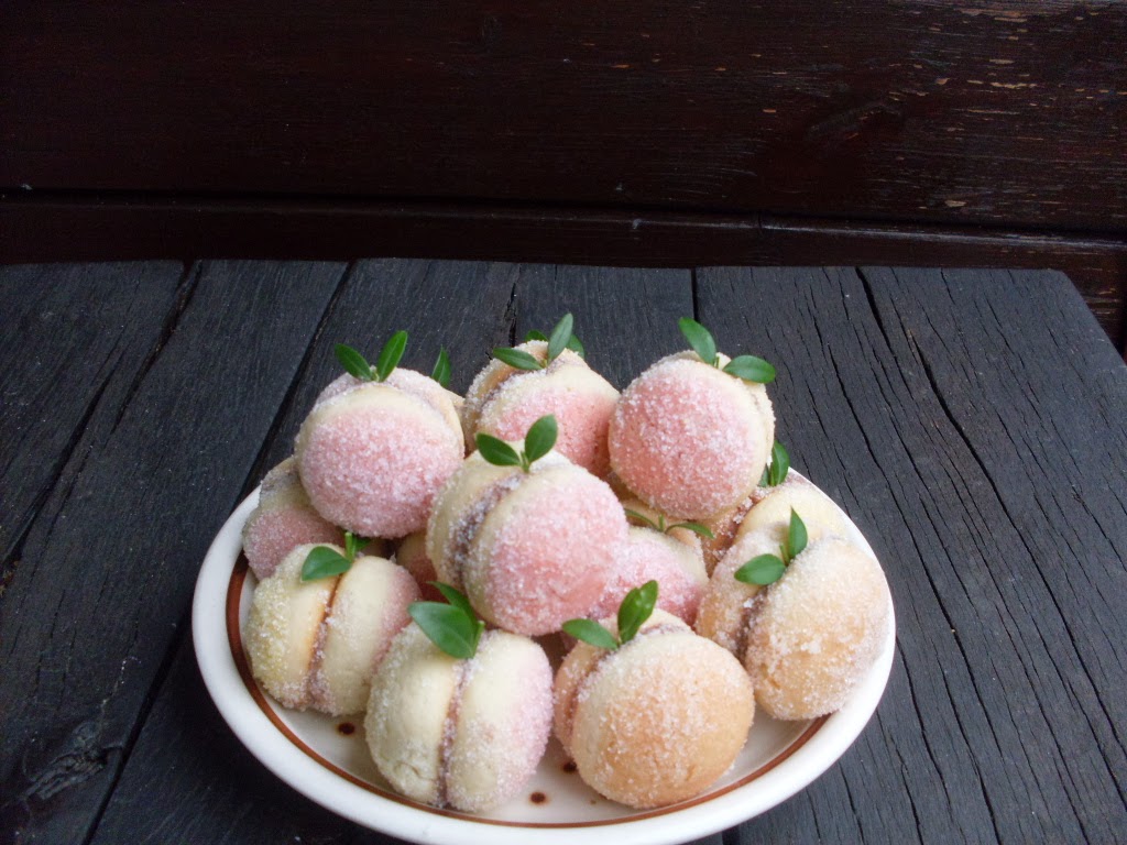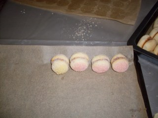 • Слепвам две по две, така че да се получи топчица във формата на прасковка.