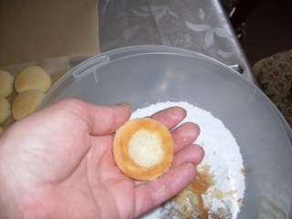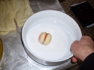 • После пускам в купичката със захар и раздрусвам, така че от всички страни да попие захарта.