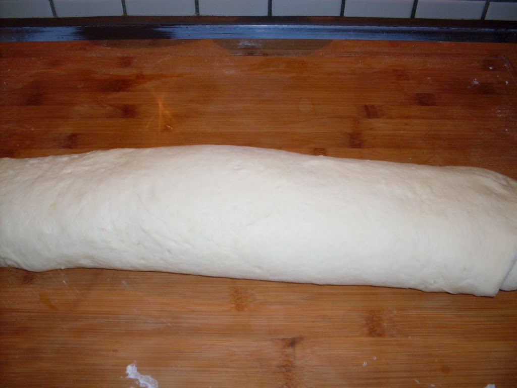- Den Teig von der langen Seite her aufrollen.