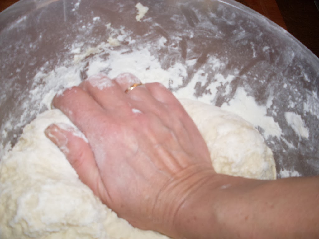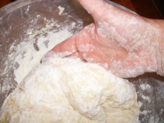 - Zu einem festen Teig verarbeiten. Dazu noch Mehl geben.