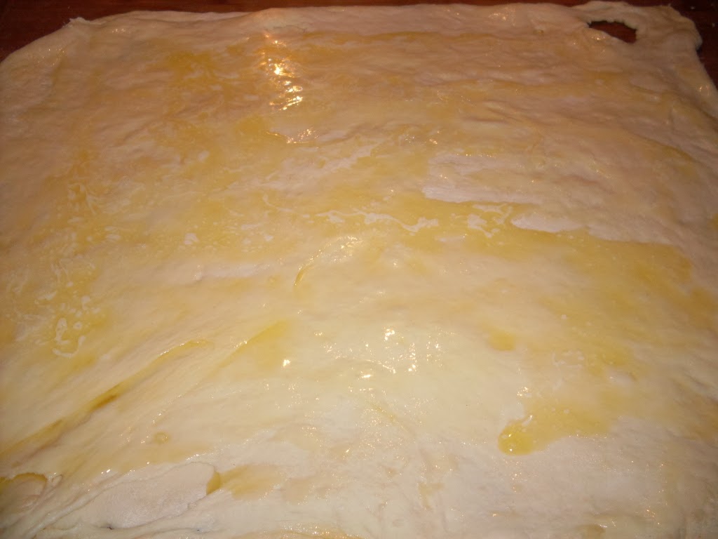 - Die Butter auf den Teig streichen.