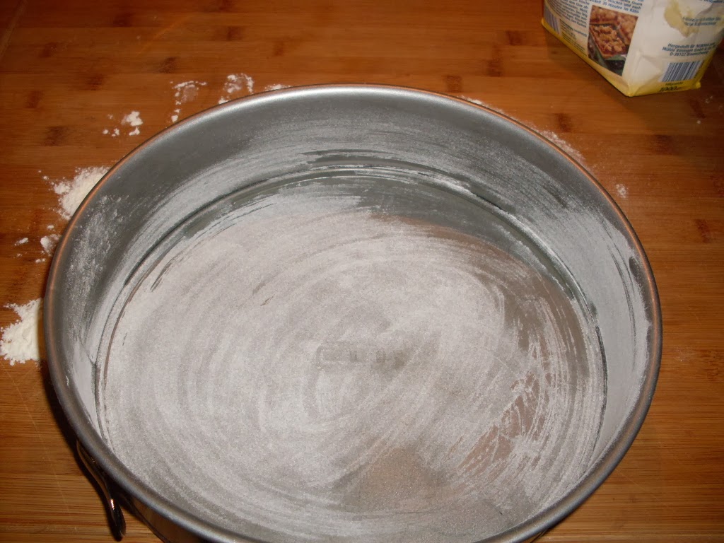 - Eine runde Kuchenform (24 cm) einfetten.