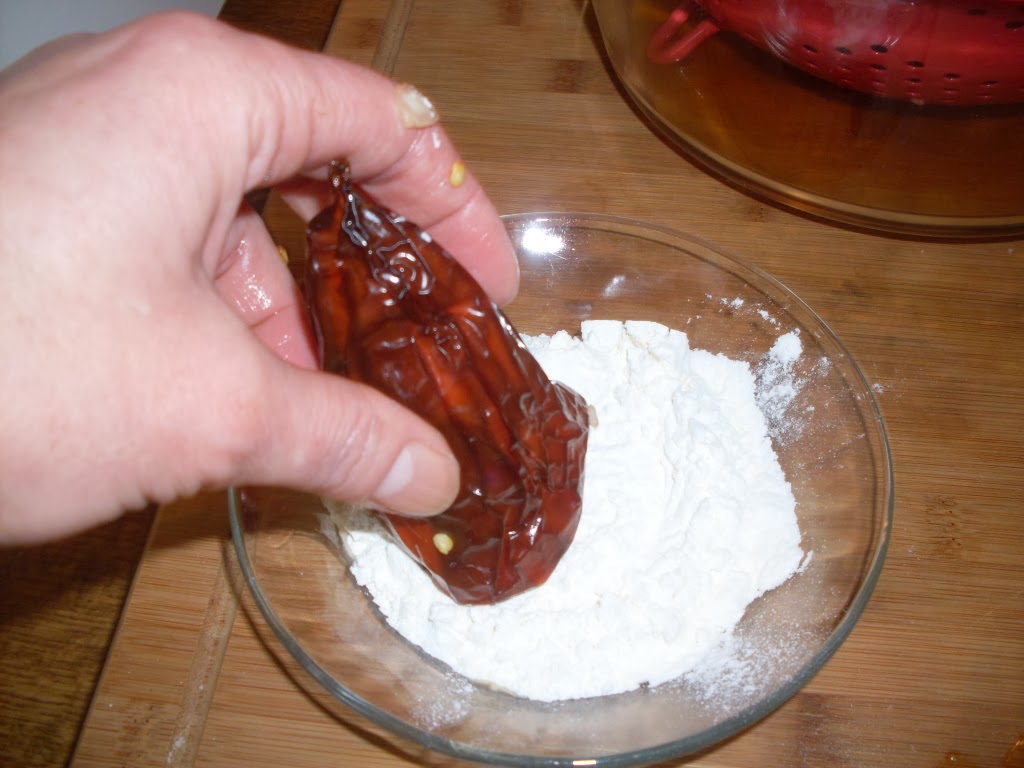 - Потапям отвора на чушките в брашно, за да не би плънката да излезе от тях при печенето.