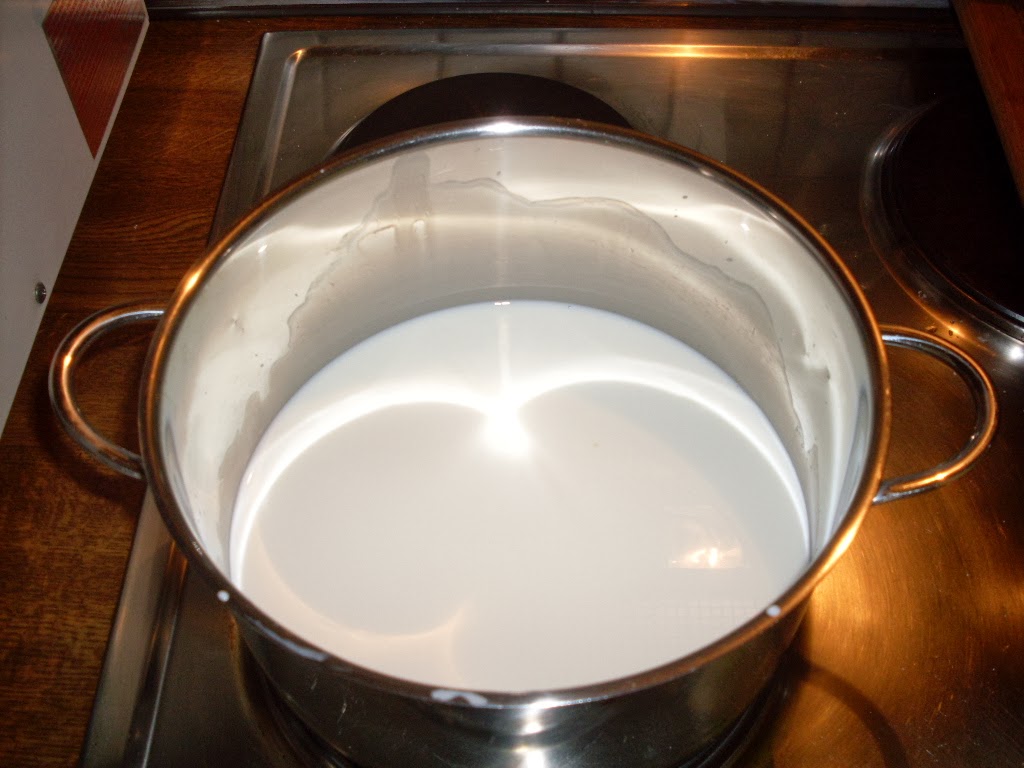 - Milch und Zucker in einem Topf lauwarm werden lassen.