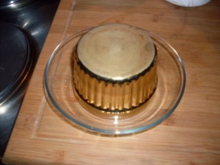 - Im Backofen im kaltes Wasserbad bei 180 Grad 50 – 60 Minuten stocken lassen. Das Wasser nicht kochen darf.
