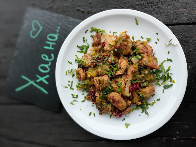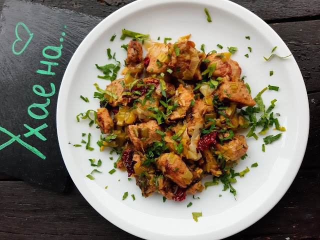 С вино и чесън е по-хубава. Може и сушени сливи.