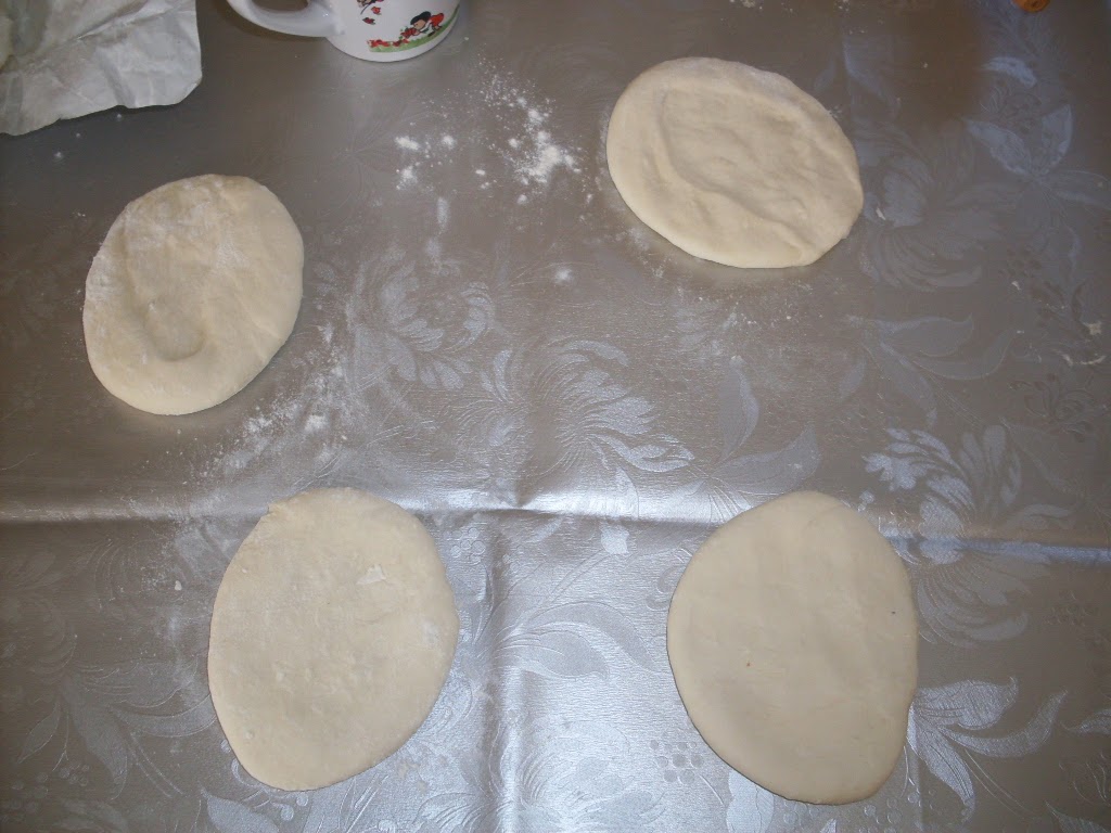 - Разделих тестото на четири равни парчета, които оформих на малки питки с размер на чинийка за кафе.