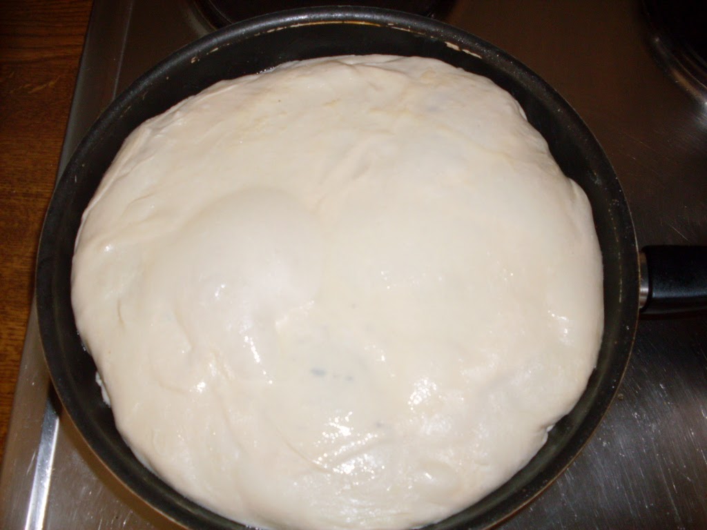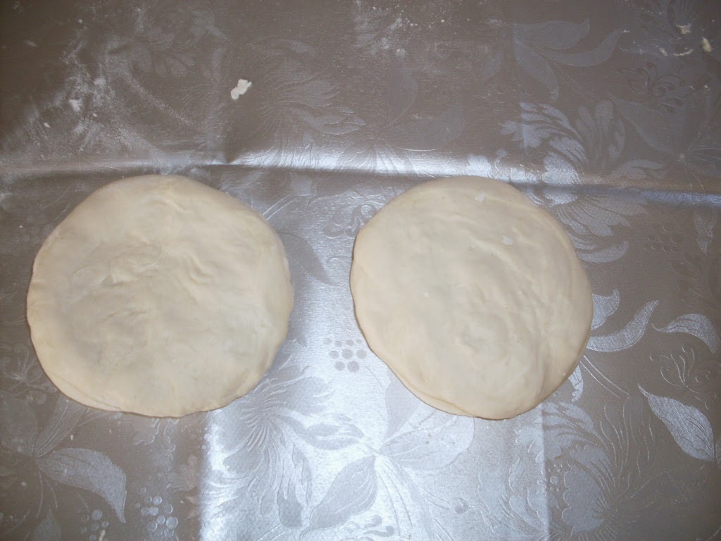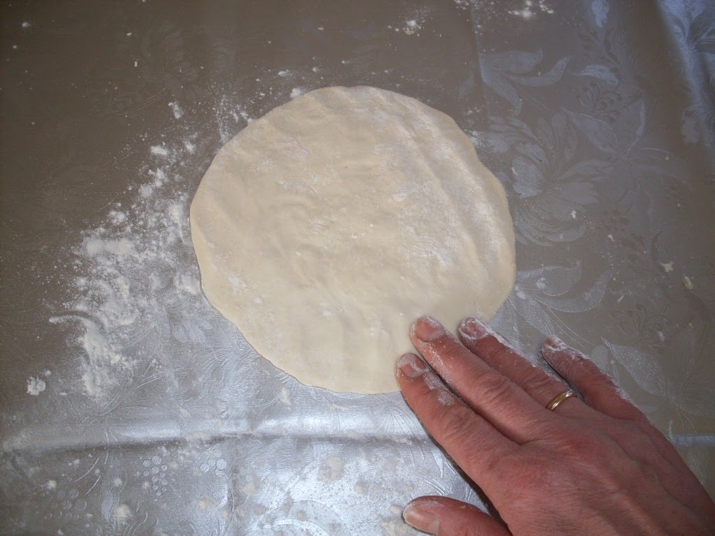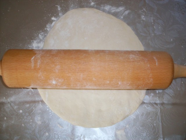 - Разточих две кори с размер по-голям с около 5 см. от размера на тигана. Първо разстлах в кръг с ръце.