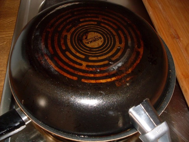 - Сложих тигана на котлон с размера на дъното на тигана и пекох на средна степен на мощност на котлона, похлупен с капак.