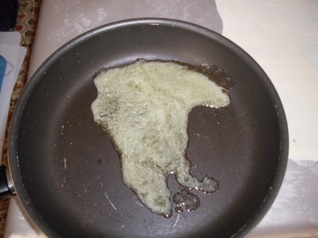 - В тиган с размер 28 см. в диаметър разтопих останалото масло.