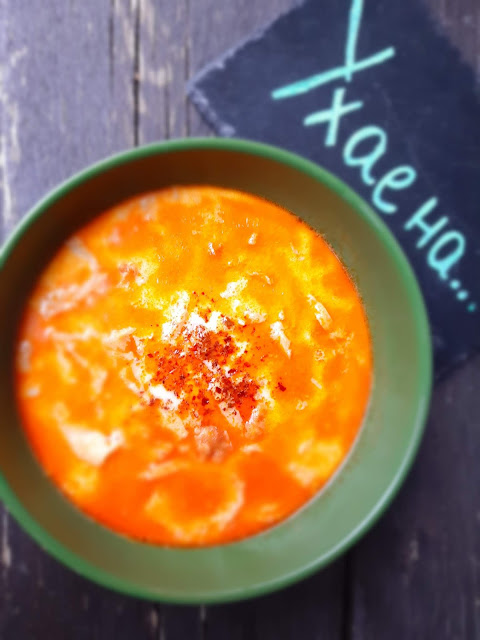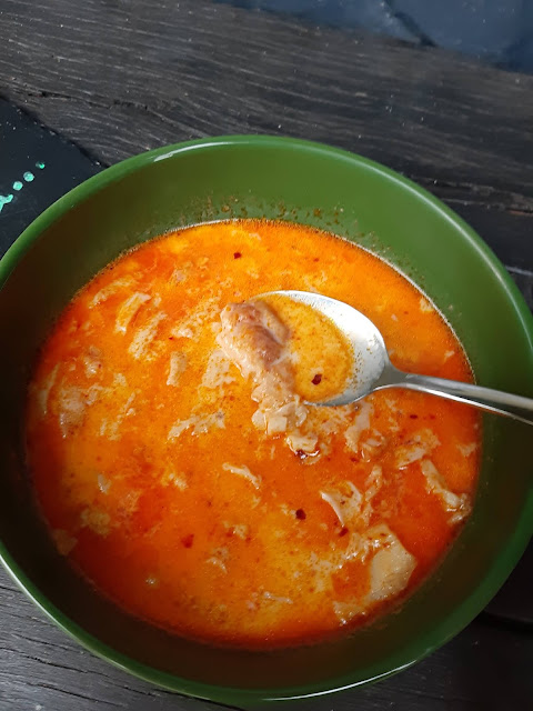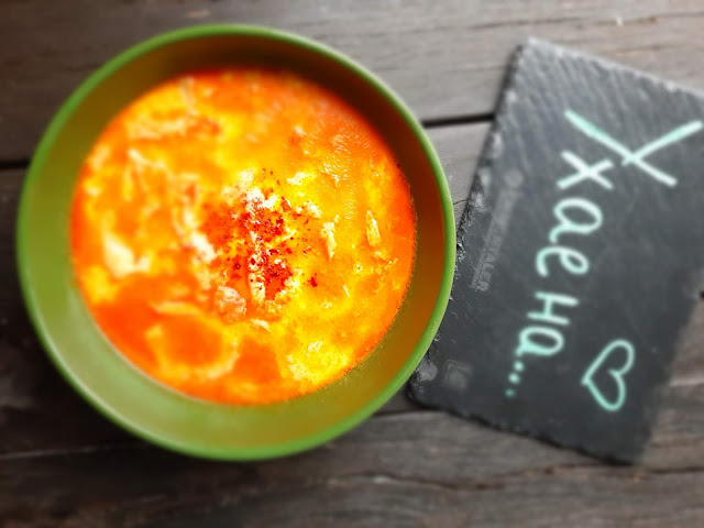 - Сервирам шкембе чорбата гореща, а всеки си овкусява с чесън, оцет и лют червен пипер.