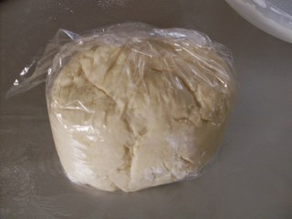 - Готовото тесто завих във прозрачно фолио и оставих за 10 минути да си почине.