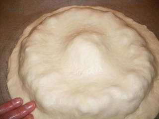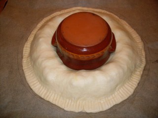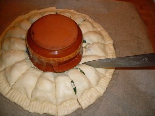 - Останалата плънка я подредих с ръце в правилен кръг, около купичката на около 2 см. разстояние от средата и 2 см. разстояние от края на кората.