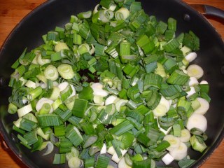 - Нарязах на едро пресния лук. В голям размер тиган, загрях олиото и запържих лука, колкото да омекне.