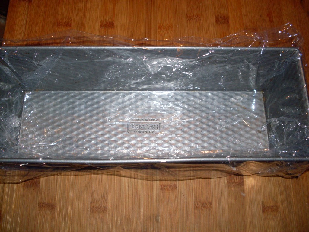 - Die Kastenform mit Frischhaltefolie auskleiden und beiseite stellen.