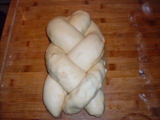 - Die Teigstücke zu einer Rolle formen und zu einem Zopf flechten.