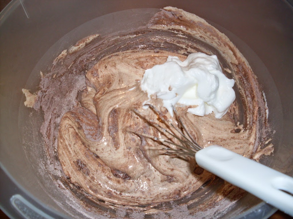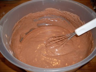 - Цялото това действие продължава, докато свършат брашното и белтъците. Получава се пухкав кафяв, от какаото крем.