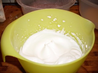 - Разбих белтъците на сняг, в подходяща по размер и суха купа. Пиша суха, защото това е много важно, за да се разбият на сняг белтъците. Купата и накрайниците на миксера трябва да са чисти и сухи.