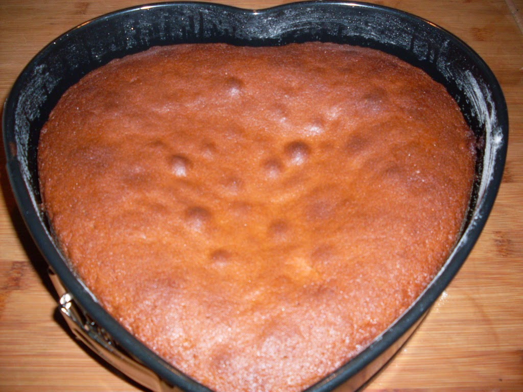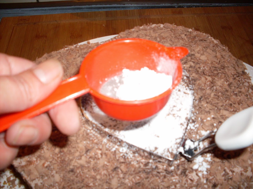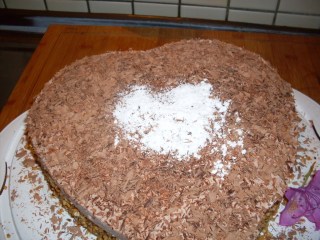 - Поръсих с малко пудра захар, под формата на сърце в средата на тортата.