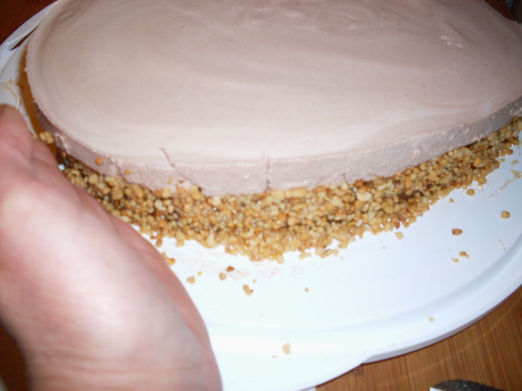- Залепих с ръка по цялата долна, странична част на тортата – крокант.