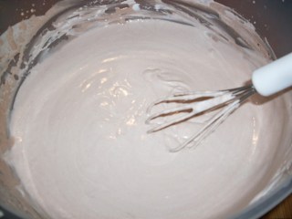 - В друга суха купа, разбих студената сметана /от хладилник/ до пухкавост. Проверявам готовността на сметаната, като обърна купата обратно и тя не се излива.