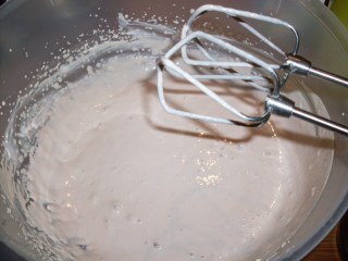 - Желатинената смес добавих към млечната смес и разбивах непрекъснато с миксера, за да не се получат бучки от желатина.