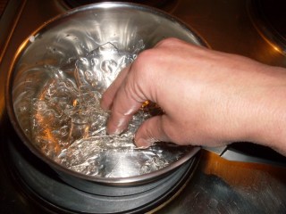 - Накиснах листата желатин с малко студена водичка за 10 минути, докато набъбнат.