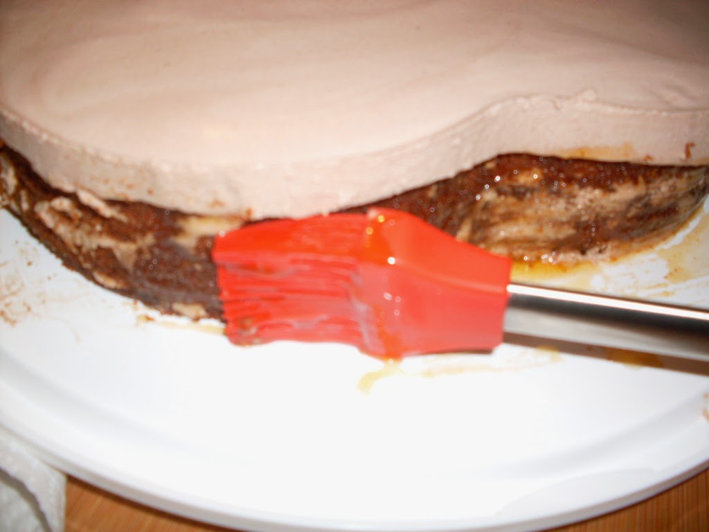 - С така прецедения и течен конфитюр от кайсии намазах само долната странична част на тортата – блата.