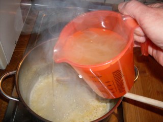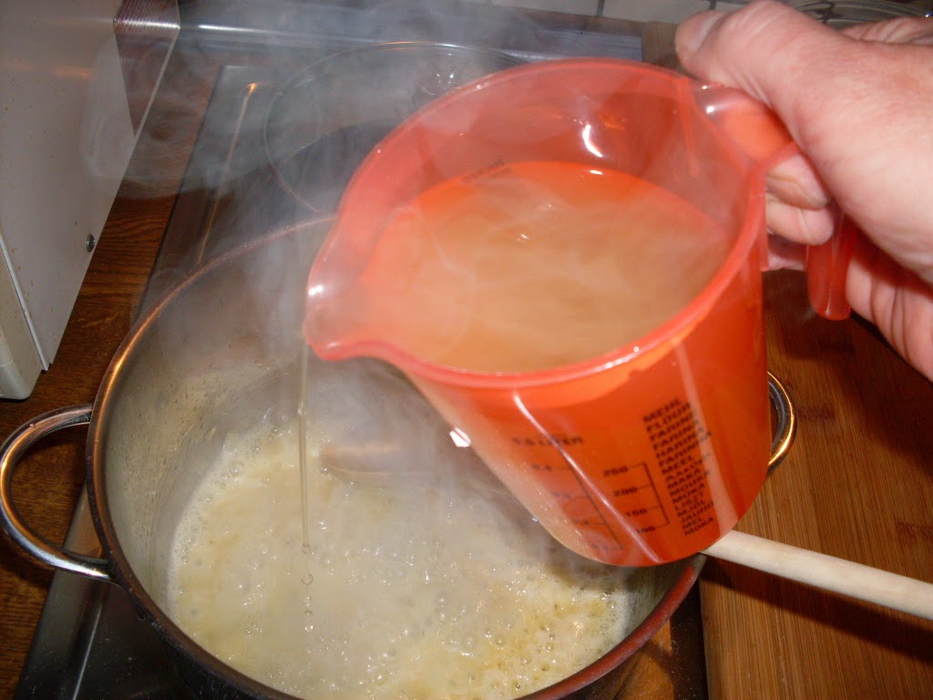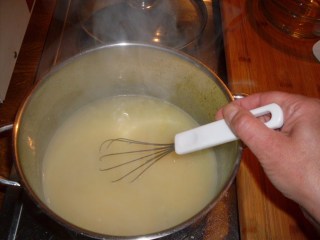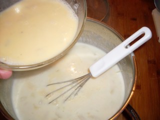 - Продължавам бъркането с тел за разбиване, докато брашното се разтвори и се получи гладък бульон.