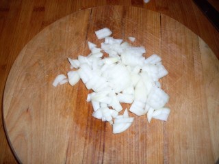 - Пускам ситно нарязаната глава кромид лук и пържа само до омекването му.