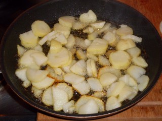 - Пържа картофите, без да бъркам, докато видя, че отстрани са станали златисто – червени, почти изпържени.