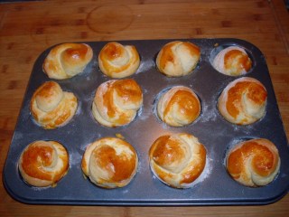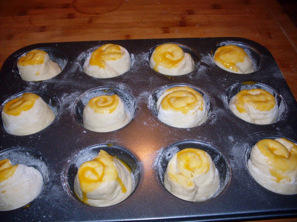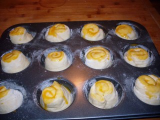 • Подреждам рулцата във формата за мъфини и намазвам с разбития жълтък.