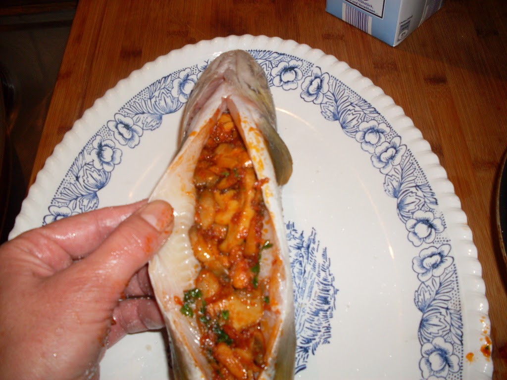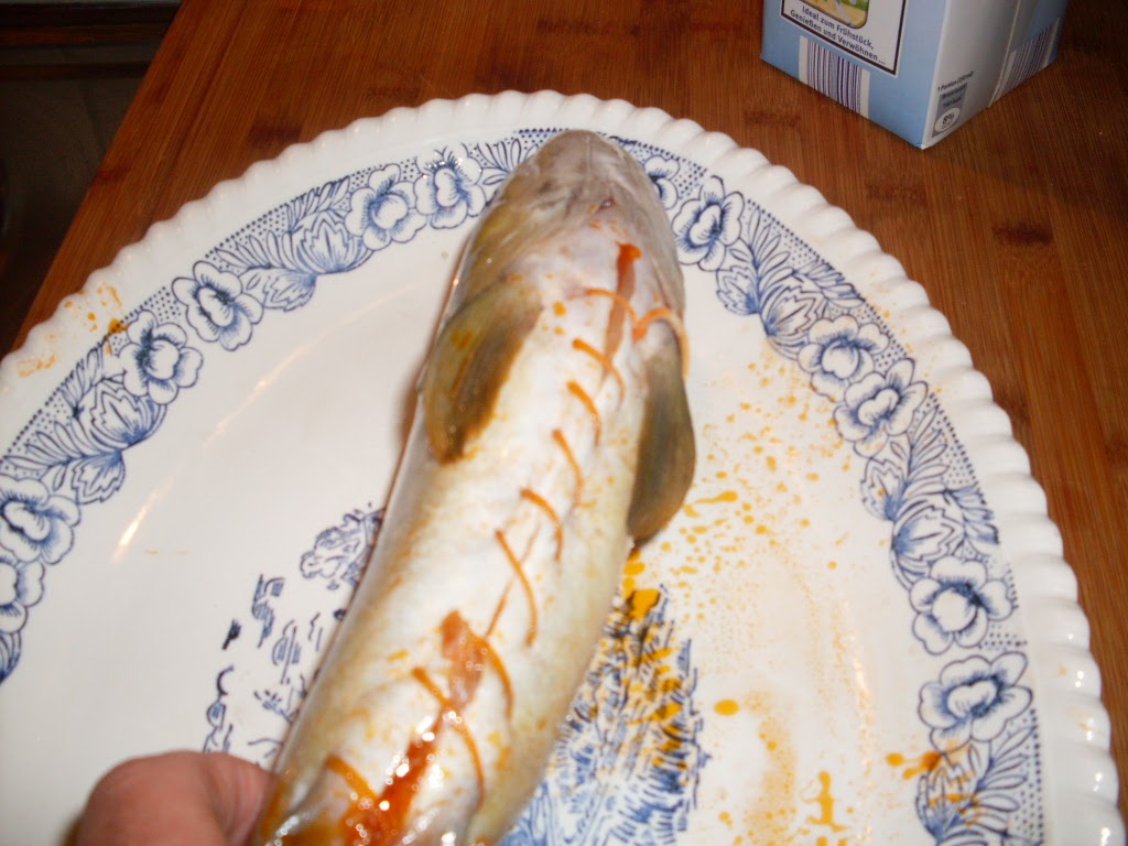 - Почистих пъстървата, измих я и много хубаво я подсуших с домакинска хартия.