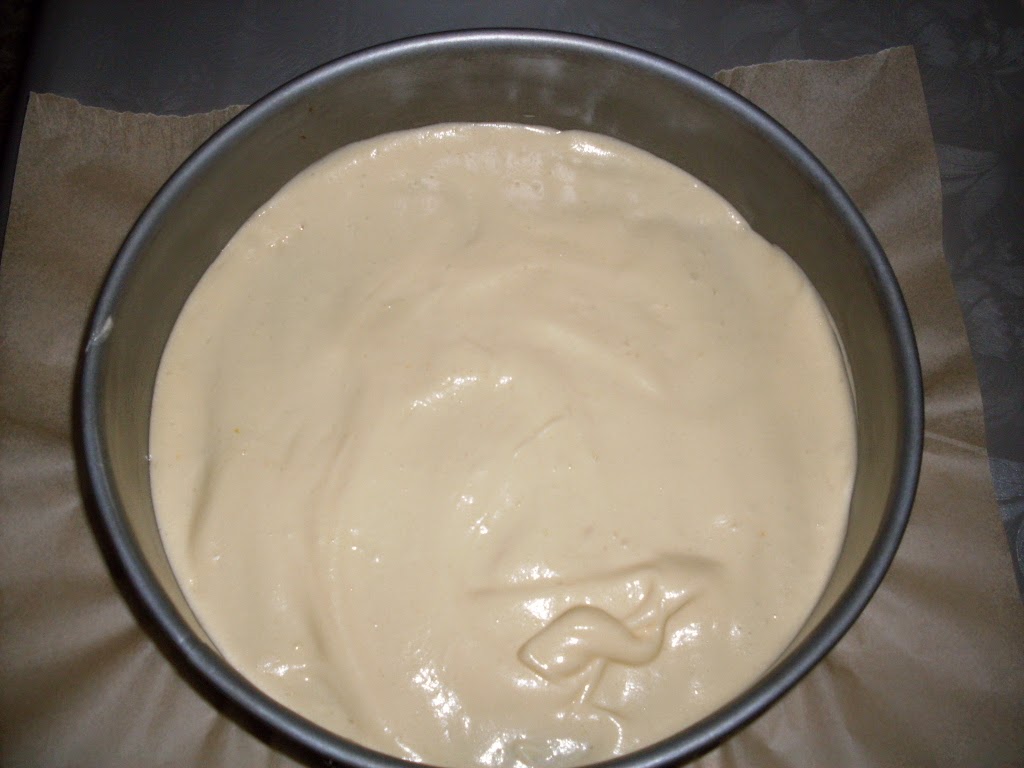- Изсипах първата доза в подготвената вече форма за торта и подравних.