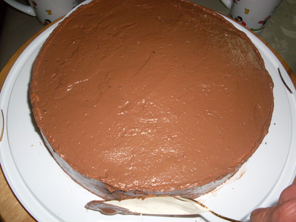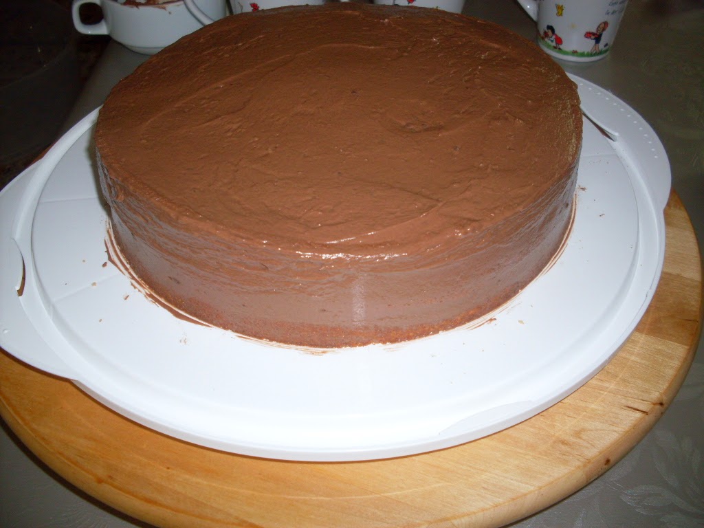 - Подравнявам тортата отгоре и отстрани и оставям на студено да се стяга.