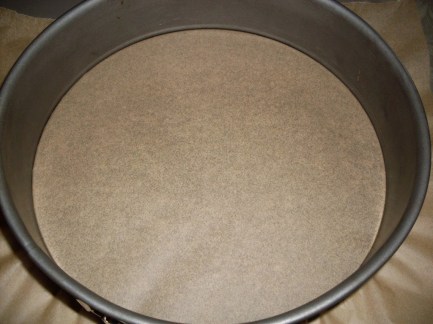 - Подготвям формата за торта /размерът е 24 см./ като слагам хартия за печене на дъното и тогава стягам със обръча.
