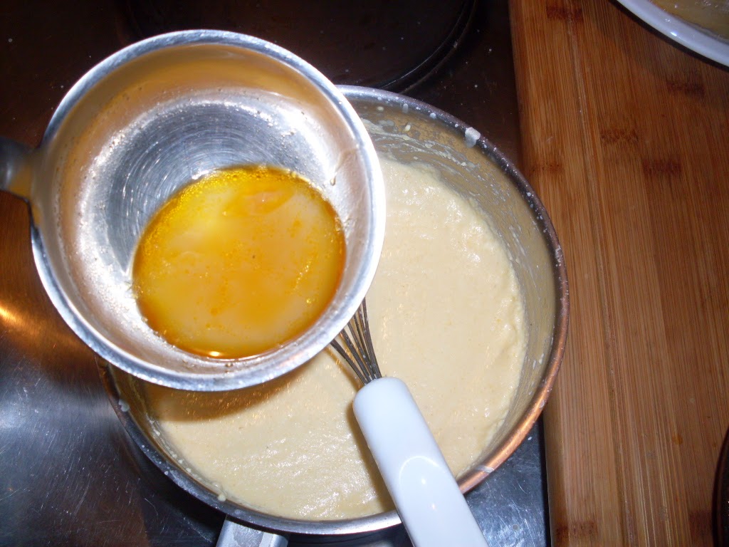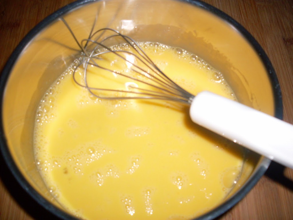 - Разбивам двете яйца с киселото мляко в подходяща тенджерка и слагам на слаб котлон – 1,5 от 3 възможни степени при мен.