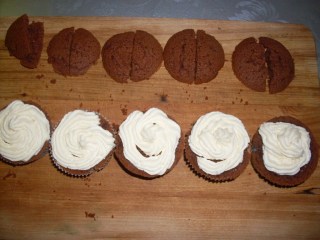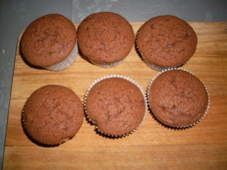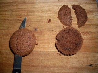 - Когато мъфините изстинаха, с помощта на остро ножче и много внимателно, отделих капачето на всеки мъфин, точно над хартийката. Много внимателно е отделянето, защото капачето е ронливо.
