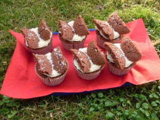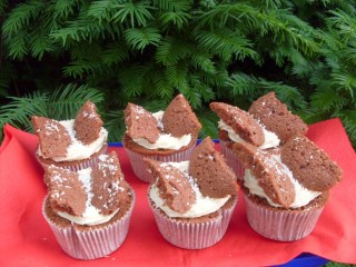 Ето, че дойде време да използвам формата за мъфини. Backen, Desserts & Co. е книгата, от която взаимствах рецептата. Хареса ми комбинацията от маслен крем с аромат на лимон и лесната декорация на мъфините, които са с парченца шоколад. Много бързо и лесно за направа и много ефектен подарък, ако сте канени на гости.