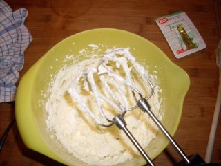 - Добавих пудрата захар, лимоновия сок и есенцията и разбих с миксер, докато се получи гладък и пухкав крем.
