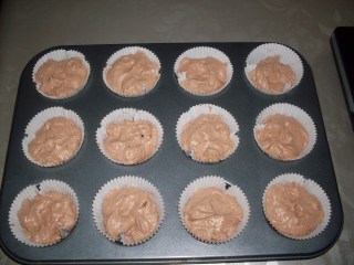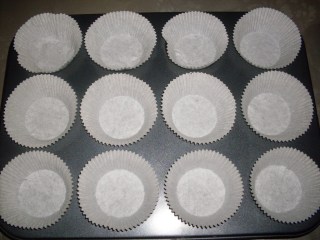 - Формата за мъфини не я мазах с мазнина, а само подредих във всяка формичка хартийка за мъфини.