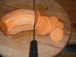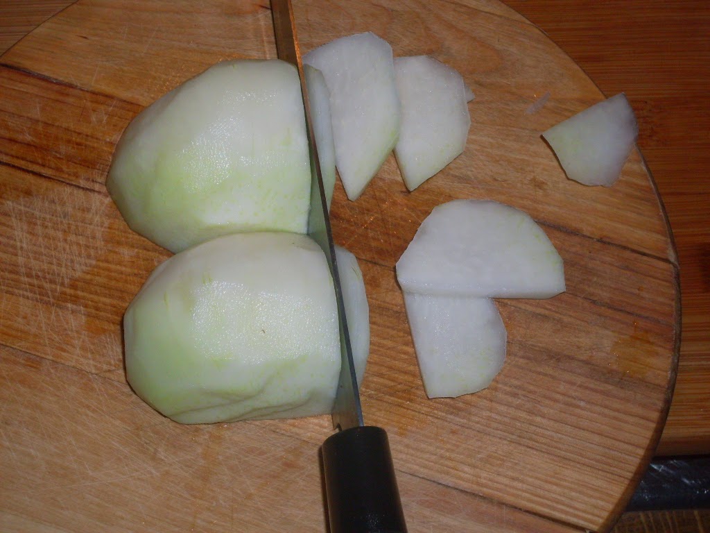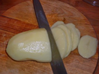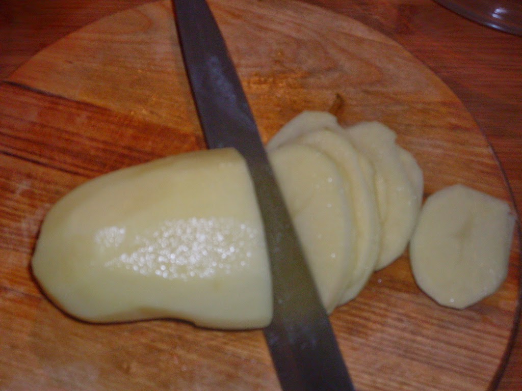 - Точно като сладкия картоф, обелих, измих и нарязах нормалния картоф.