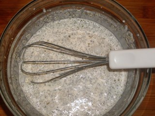 - Разбивам в купичка сметаната, заедно с предварително обелената и смляна скилидка чесън и ригана. Добавям сол на вкус и бял пипер. Трябва да се внимава с този пипер, защото е доста по-лют от черния.